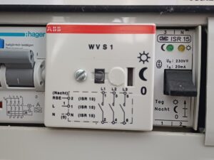 Wir besitzen einen Boiler, der im Winter von unserer Pelletsheizung und im Sommer elektrisch geheizt wird. Die elektrische Heizung wird durch den untenstehend abgebildeten Boilersteuerschütz der ABB gesteuert. Dieser Baustein reagiert auf die durch die Energie Wasser Bern (EWB) generierten Signale im Stromnetz und lädt den Boiler in der Nacht. Man kann mit dem schwarzen …